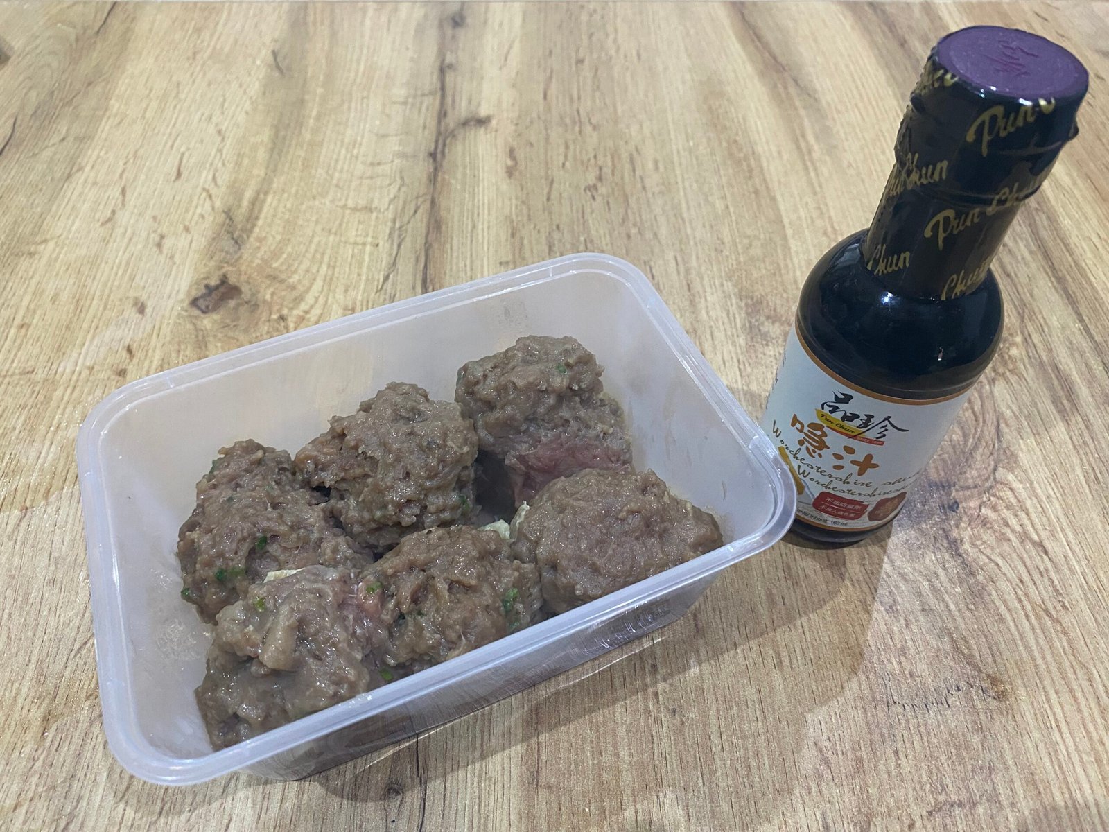 成份: 牛肉(53%)、马铃薯淀粉、植物油(菜籽油)、糖、豆皮(大豆、水)、酱油(水、大豆、盐、面粉)、蔥、盐、芝麻油、馬蹄、、胡椒粉、干陈皮。